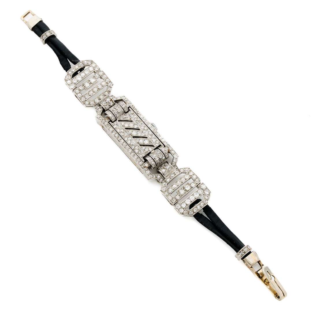 A platinum and diamond quartz winding lady's Art Deco wristwatch