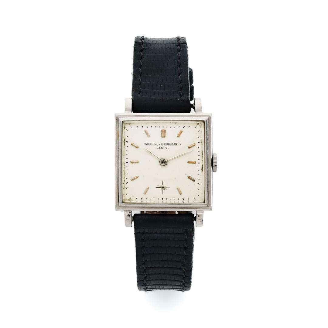 Provenance : nous remercions la maison Vacheron Constantin et ses archives pour les informations fournies sur cette montre qui date de 1959, mouvement vendu seul à Jaeger en 1959 Paris, calibre 9 ''' 1001, PGE 18 rubis, boîtier fabrication à Paris, « De Trevars ».