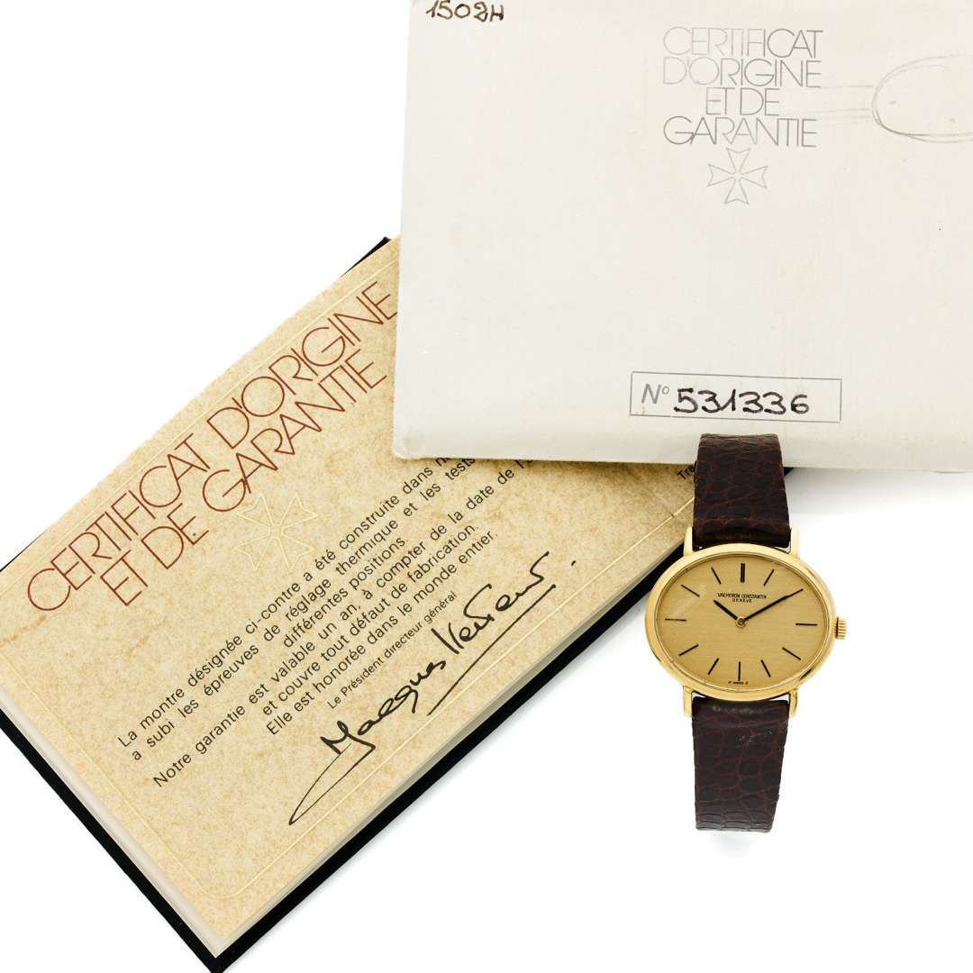 A 18k yellow gold lady's manual winding wristwatch by Vacheron Constantin with leaflet, certificate and tag