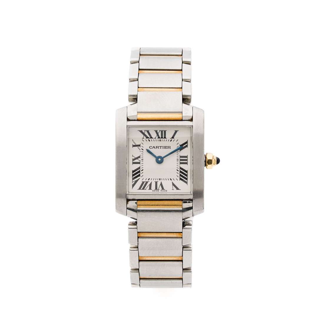 A stainless-steel and yellow gold quartz wristwatch by Cartier with matching bracelet