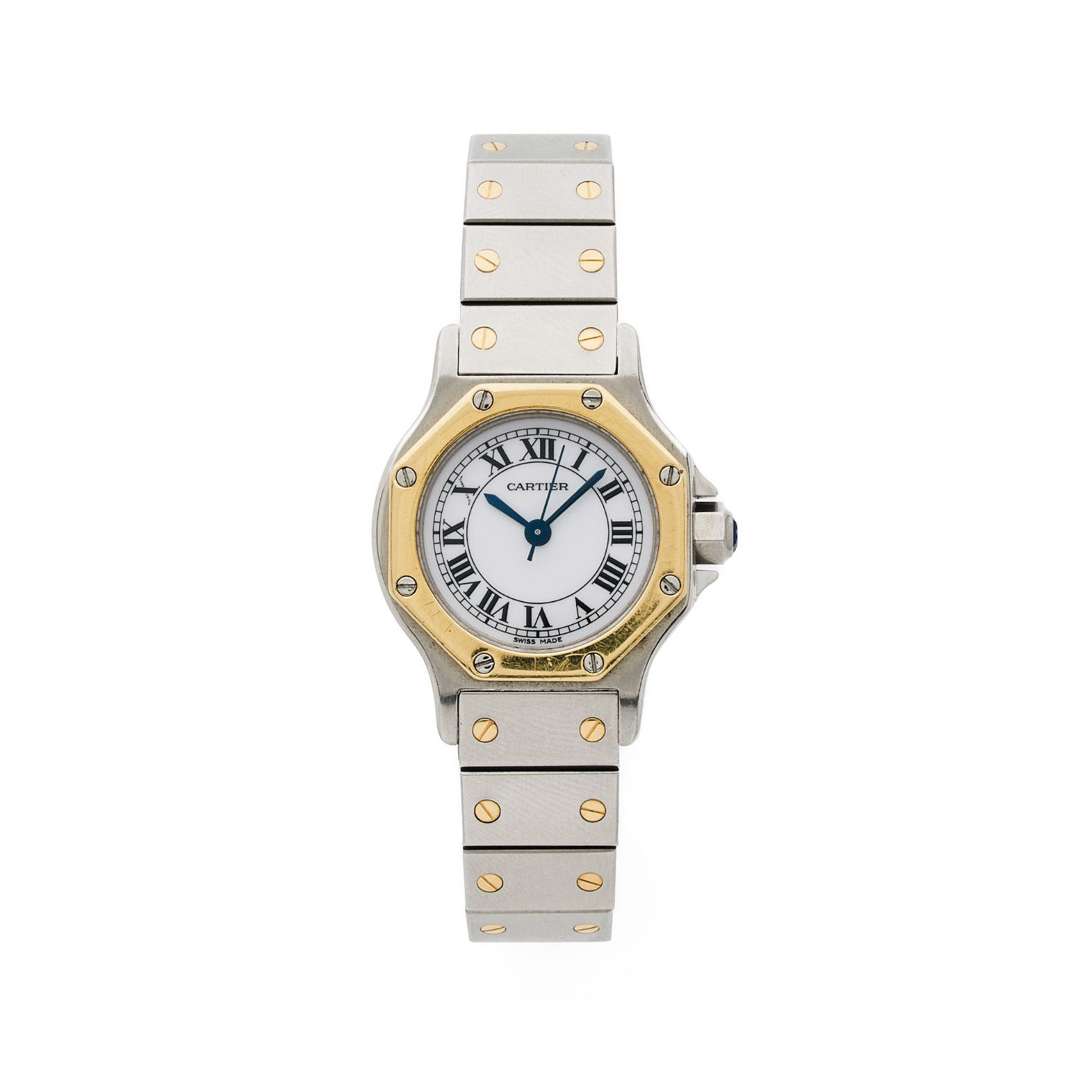A stainless steel and yellow gold lady's automatic wristwatch with matching integrated bracelet by Cartier