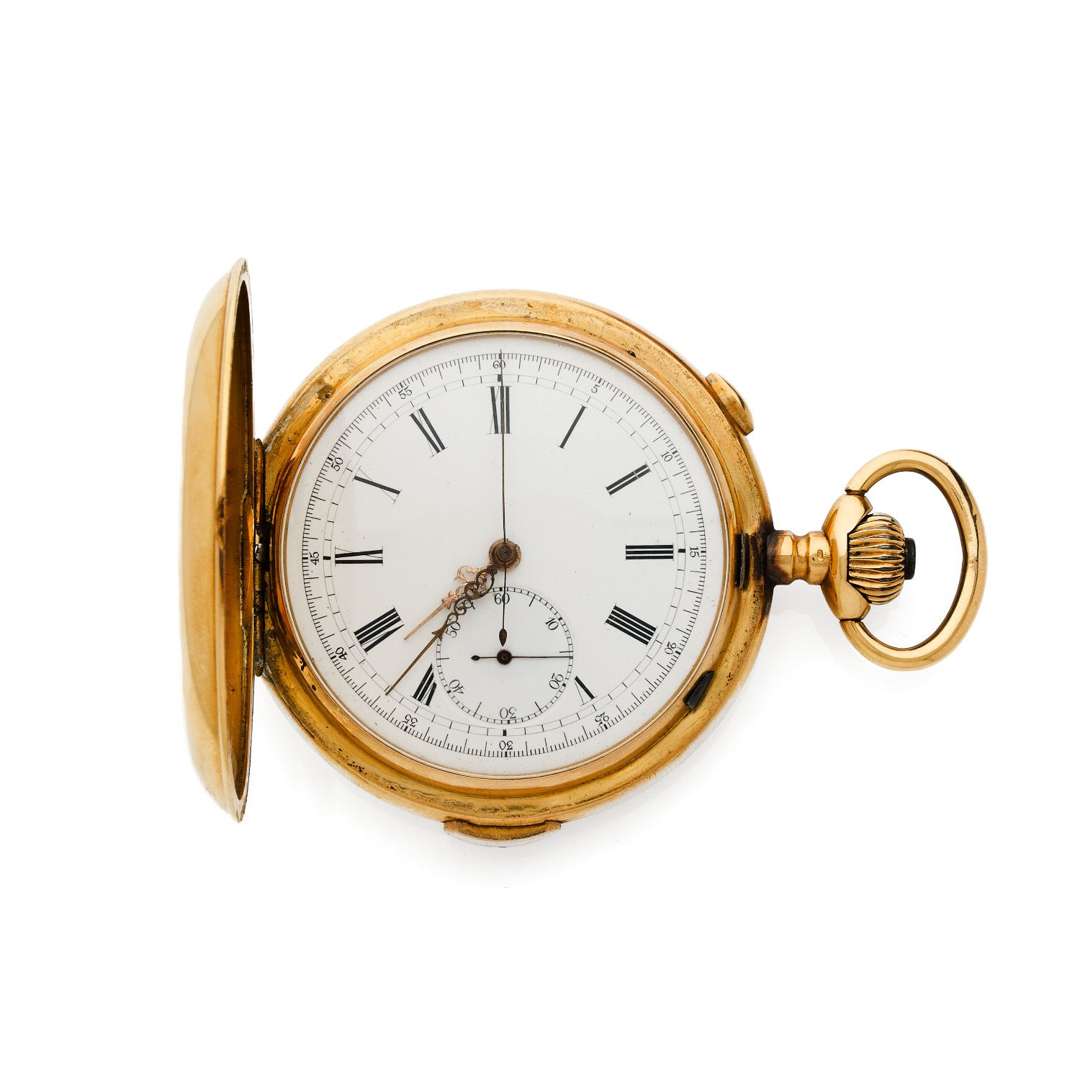 Montre de poche savonnette en or 18k (750) avec sonnerie à répétition des quarts et chronographe