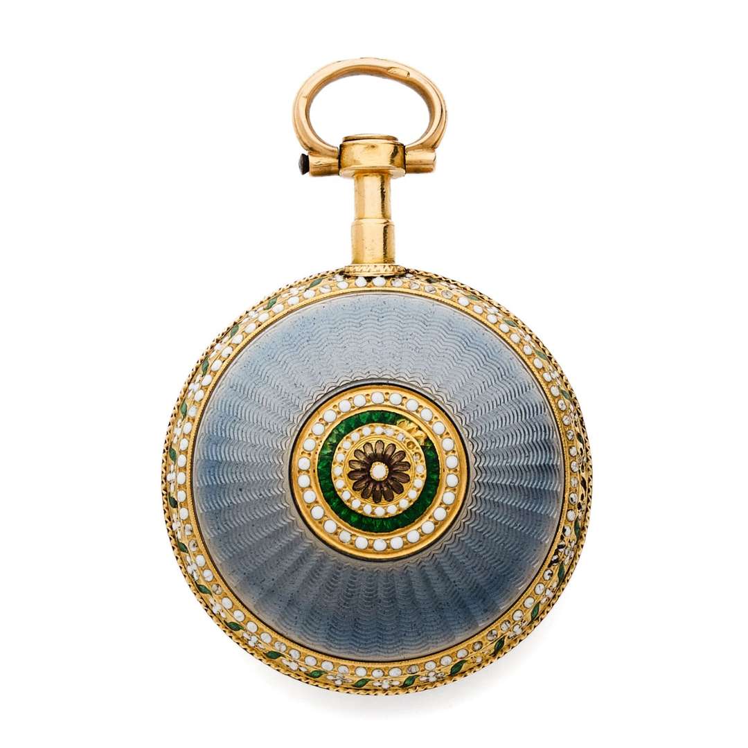 Montre de poche en or et émail translucide