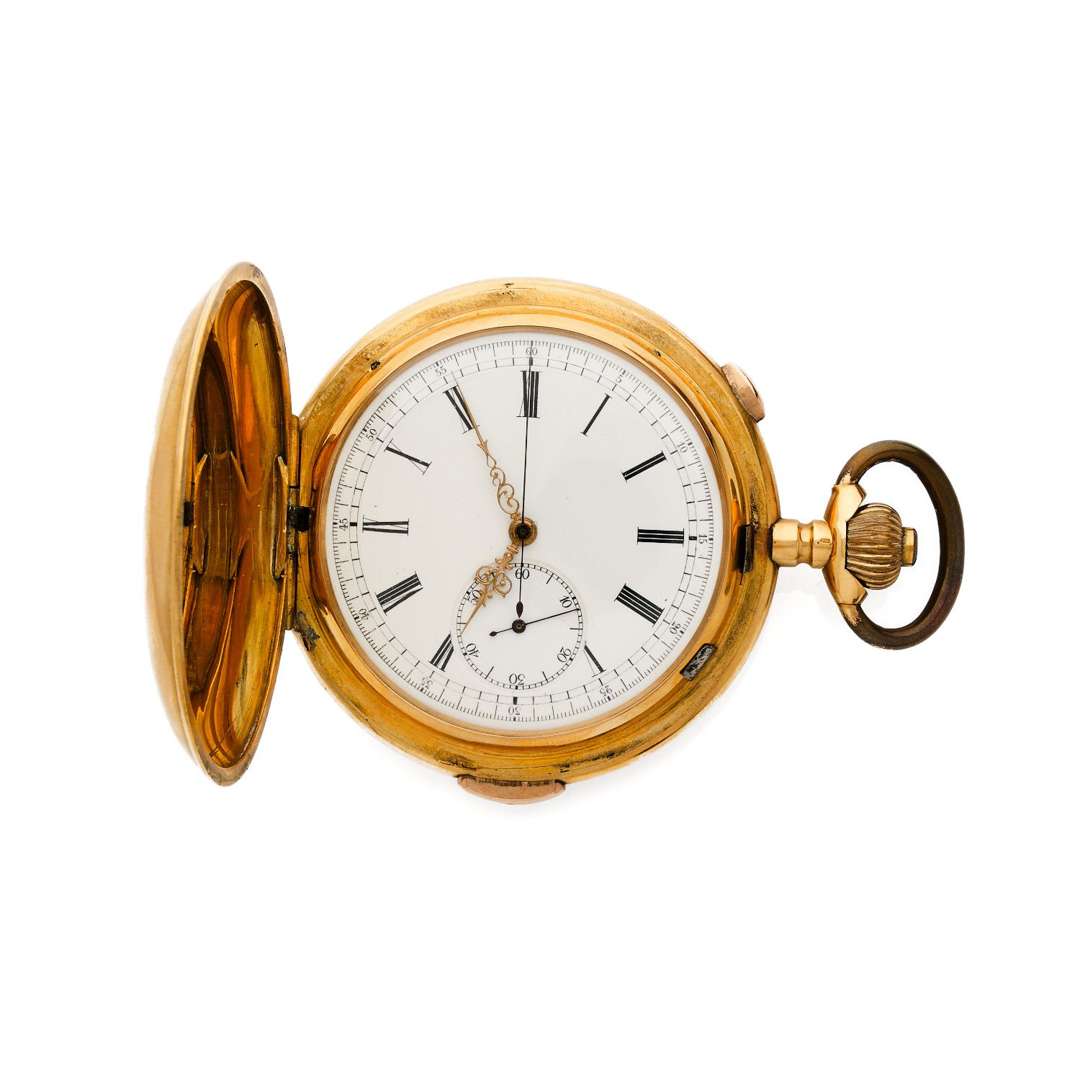 Montre de poche savonnette en or 18k (750) avec sonnerie à répétition des quarts et chronographe