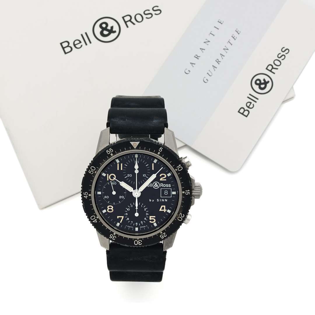 A titanum automatic chronograph wristwatch by Bell & Ross with a presentation case, a warranty card, a booklet and an Bell & Ross service invoice dated 2006