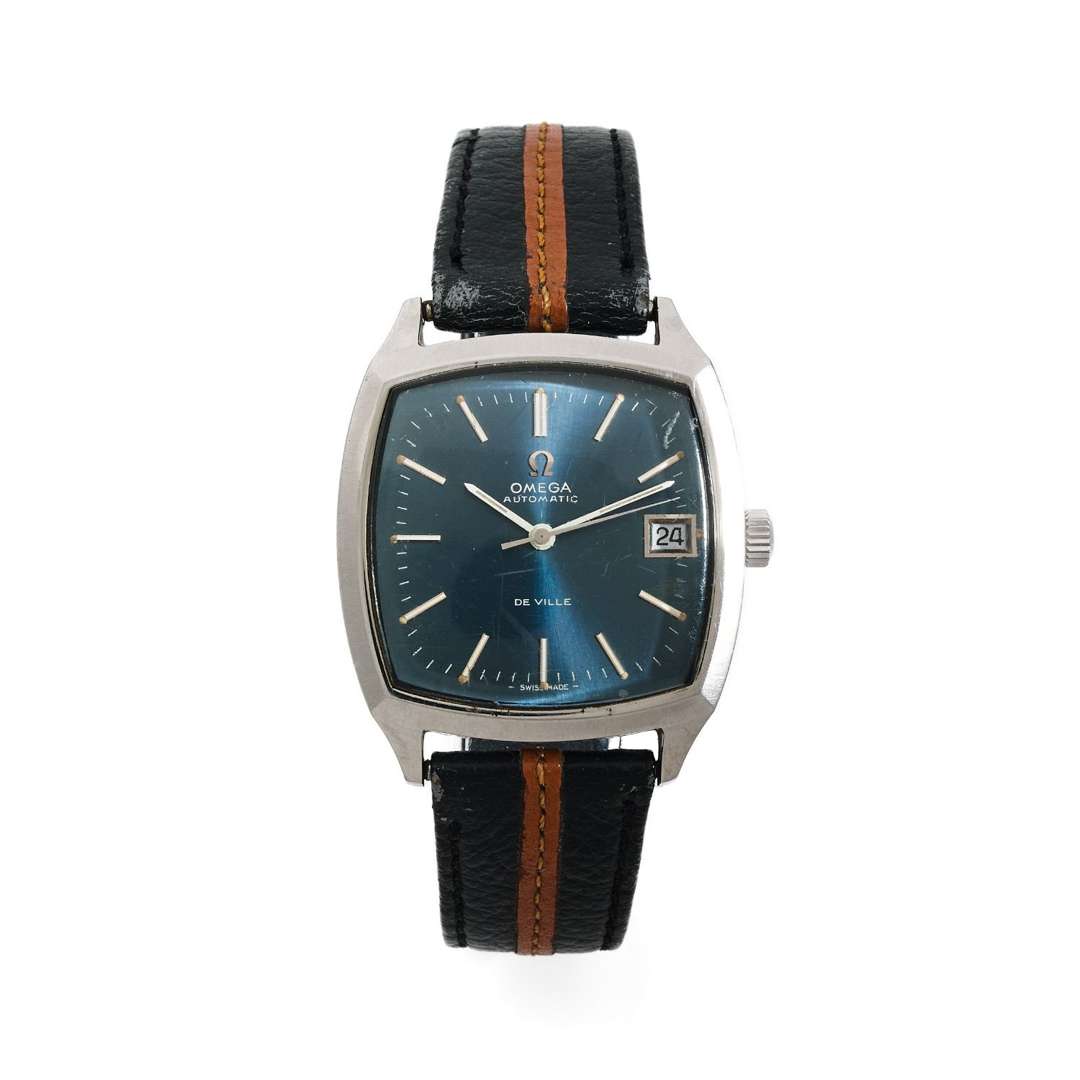 Cadran : bleu, index bâtons appliqués, trotteuse centrale, date à guichet, signé