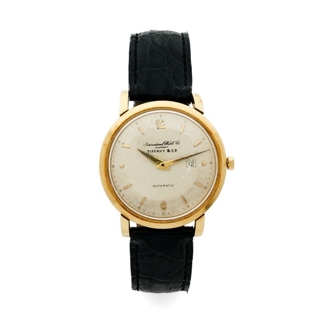 A 18k yellow gold automatic wristwatch by IWC with double signature from the retailer Tiffany Co