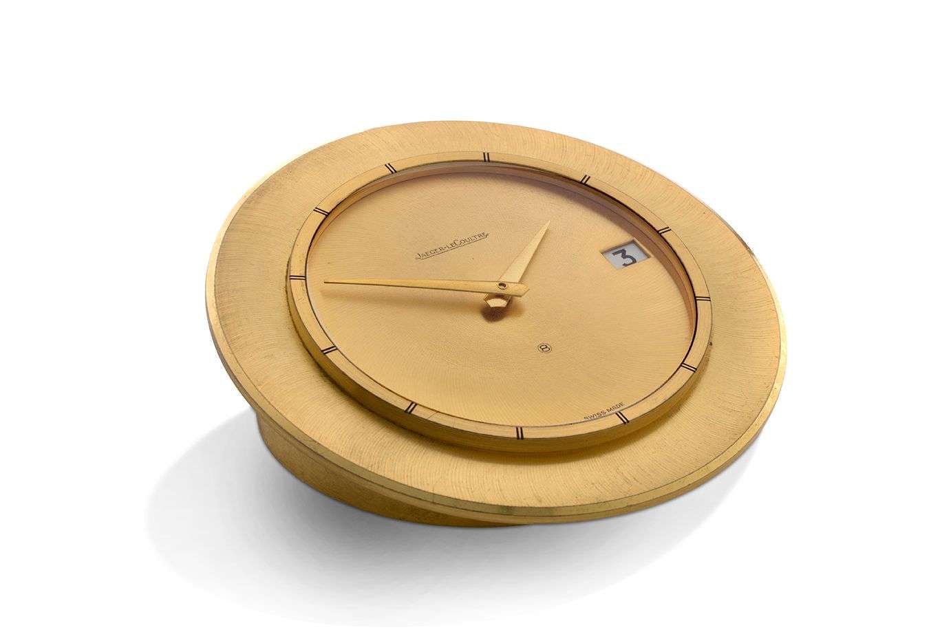 Pendule de bureau en laiton doré de forme ronde~