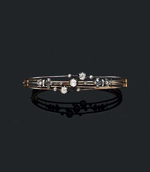 A diamond, gold and silver bracelet