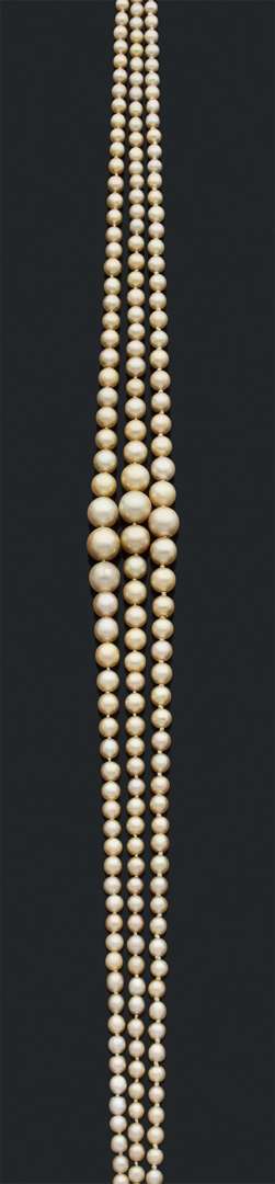 Trois rangs de 73, 75 et 79 perles fines en chute