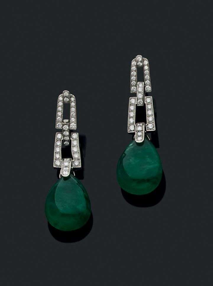 Importantes émeraudes en goutte, diamants