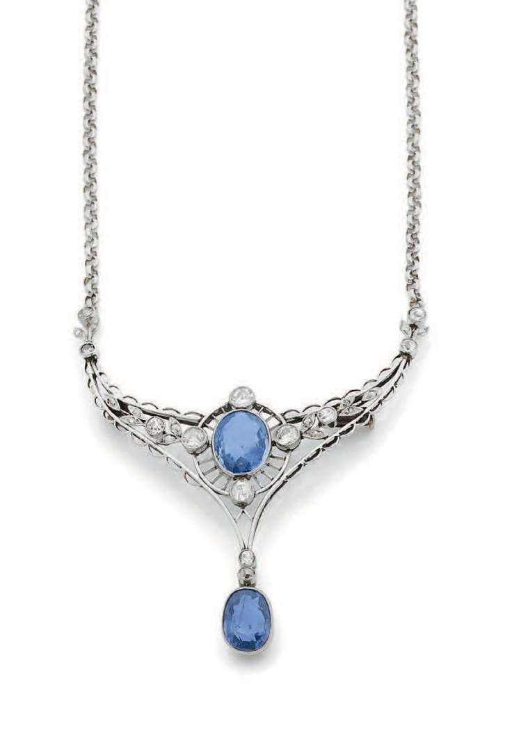 A sapphire, diamond, platinum and gold necklace, reports
