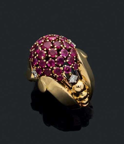 Rubis ronds, diamants taille brillant