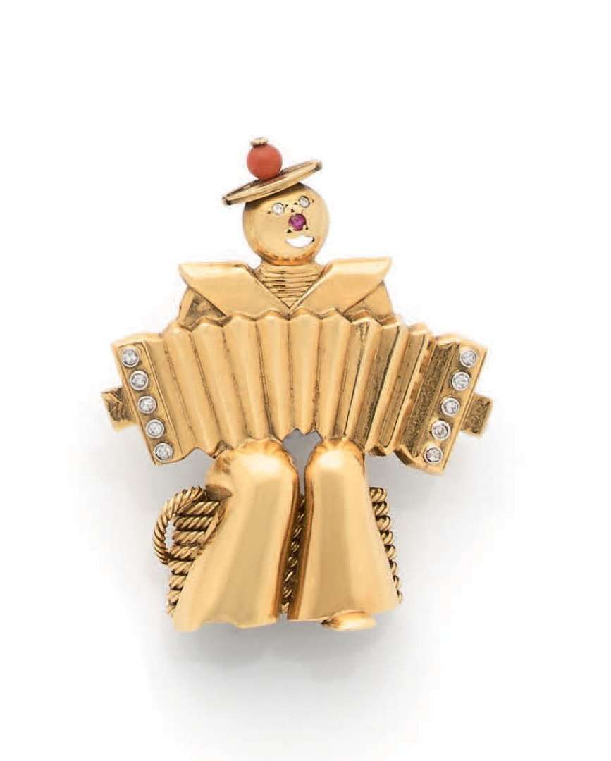 A coral, diamond, ruby, gold and platinum clip, signed Van Cleef & Arpels