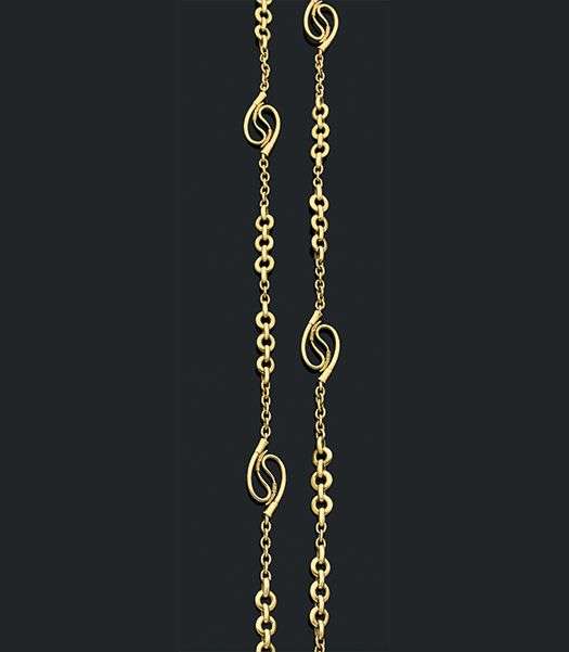 A gold long necklace, signed Hermès
