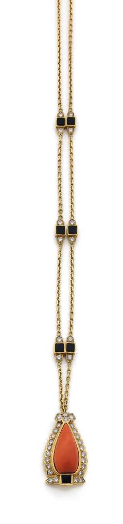 A coral, diamond, onyx and gold necklace, signed Cartier
