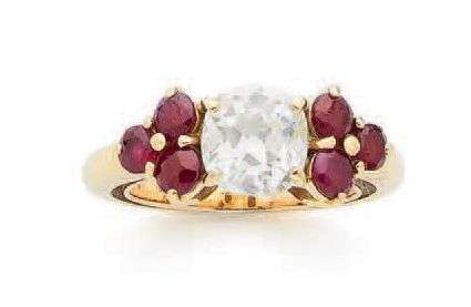 A diamond, ruby and gold ring