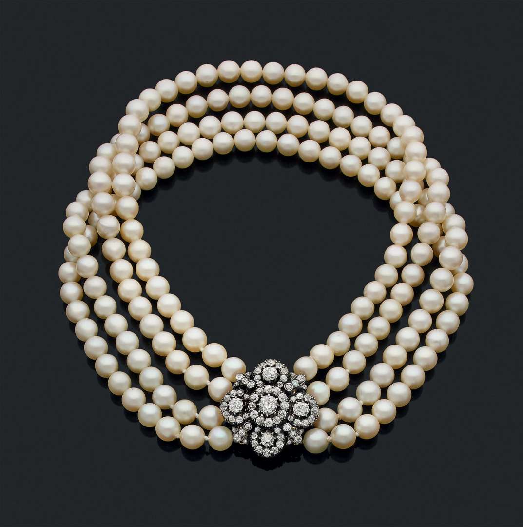 Ras de cou de 4 rangs de perles de culture