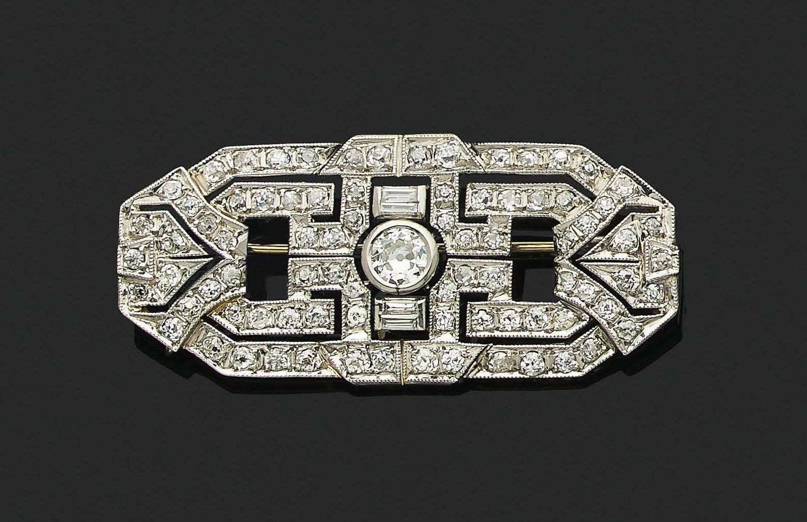 A diamond and platinum brooch
