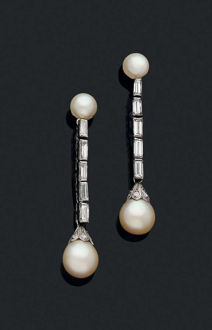 Diamants baguettes, perles de culture,