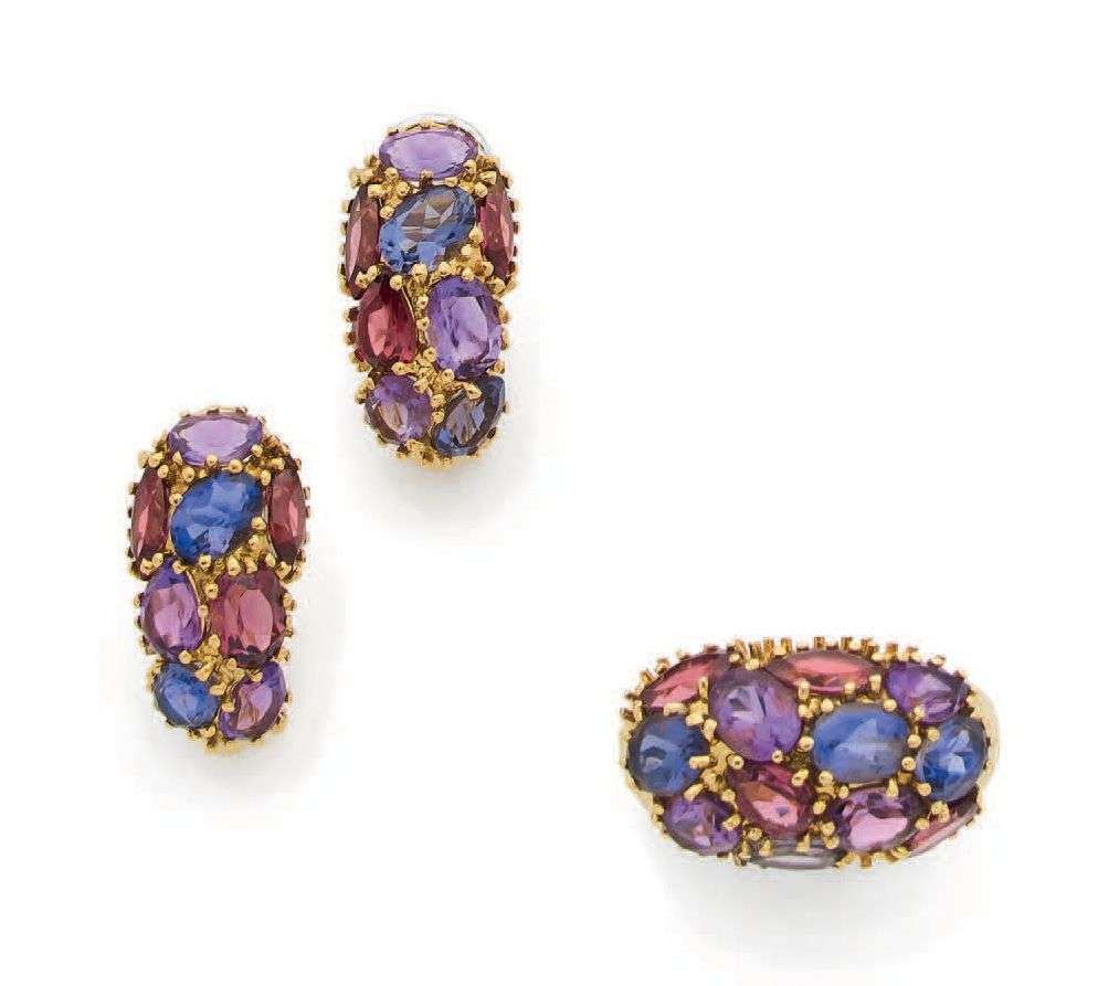 Amethyst and gold ring and earrings