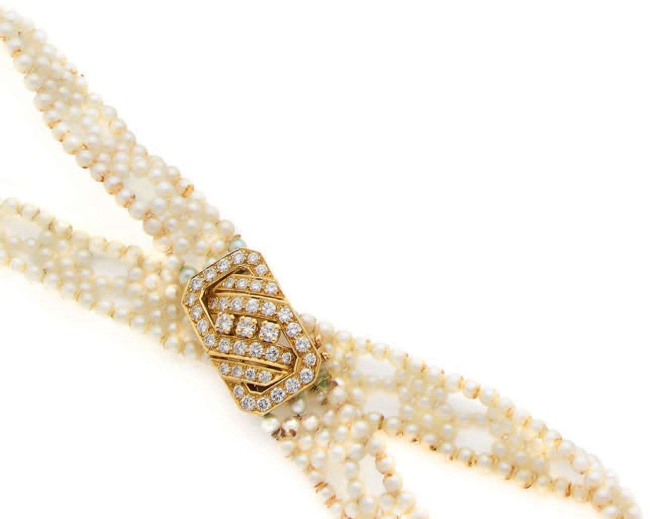 A cultured pearl, diamond and gold necklace, signed Van Cleef & Arpels
