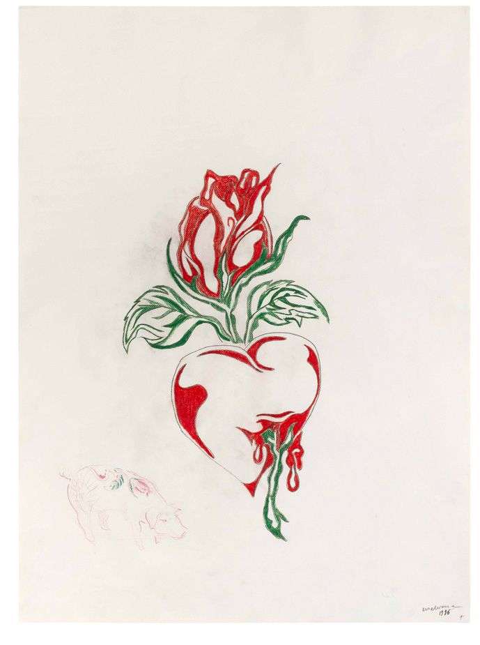 Crayon et pastel sur papier, signé et daté en bas à droite