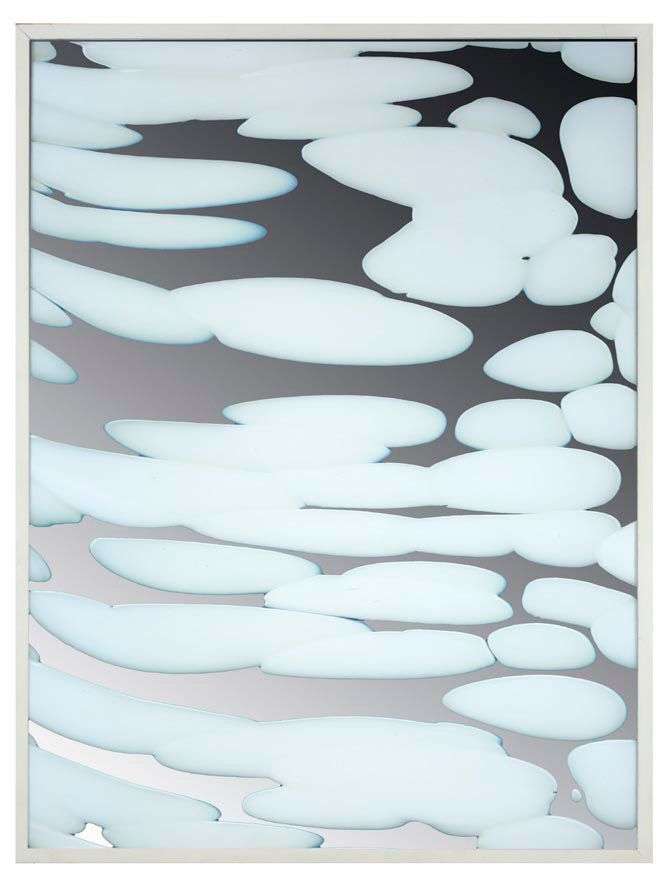 Verre soufflé argenté, signé par l'artiste et numéroté 40/99 au dos, pièce unique faisant partie d'une série.