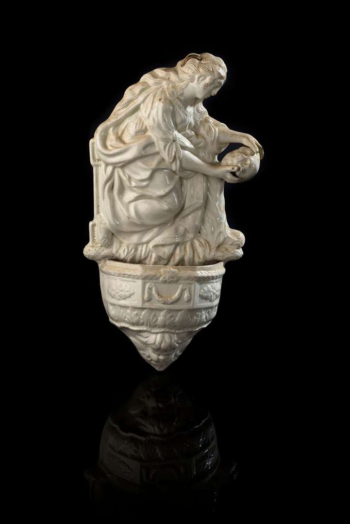 en faïence blanche représentant Sainte Marie-Madeleine pénitente.