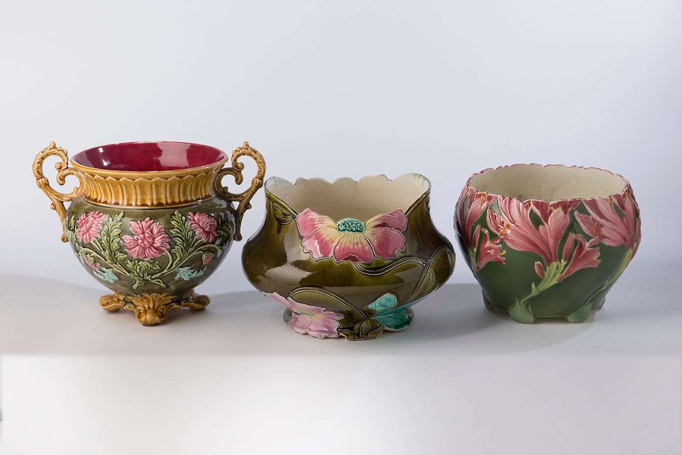 en céramique, les panses à décors floraux.