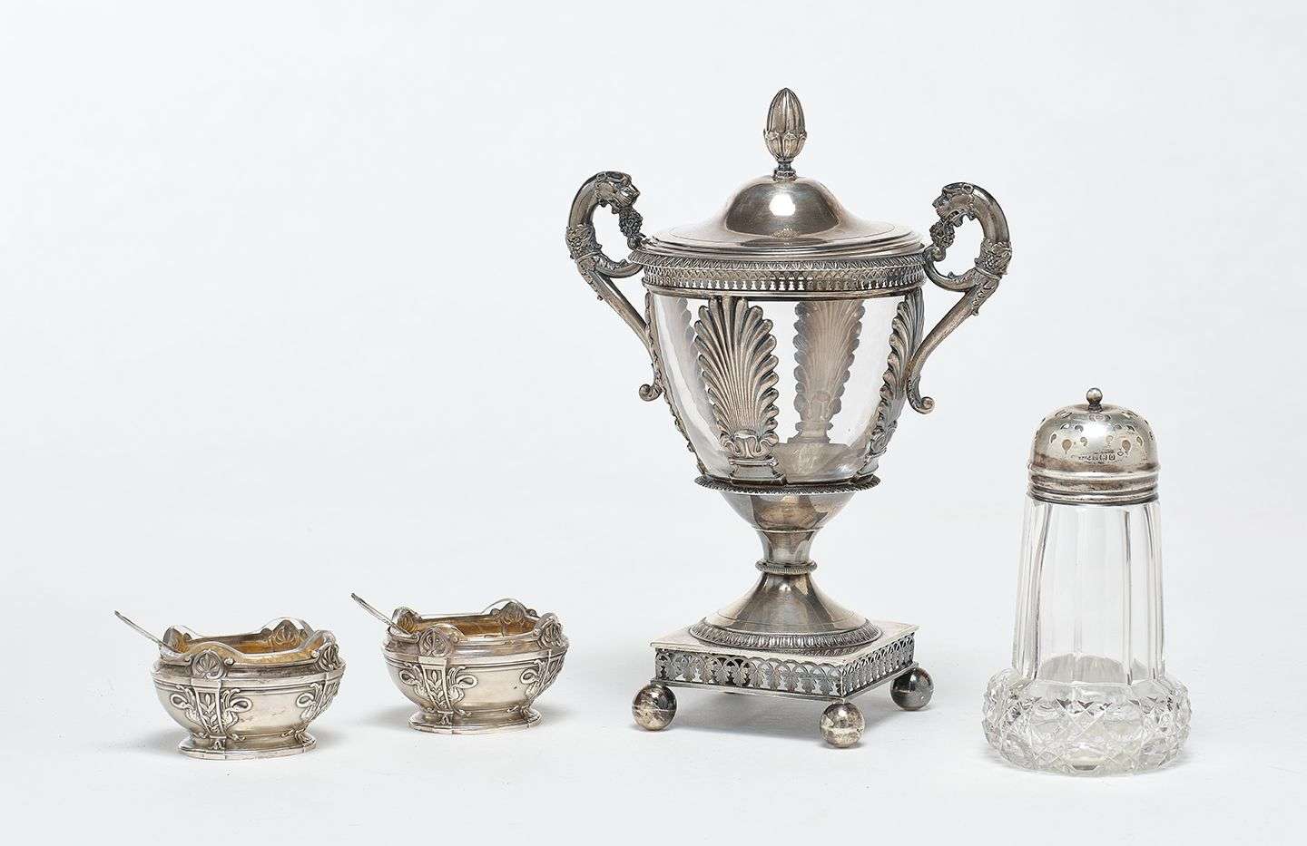 - Un drageoir à monture en argent. Poinçon Vieillard sur le couvercle.