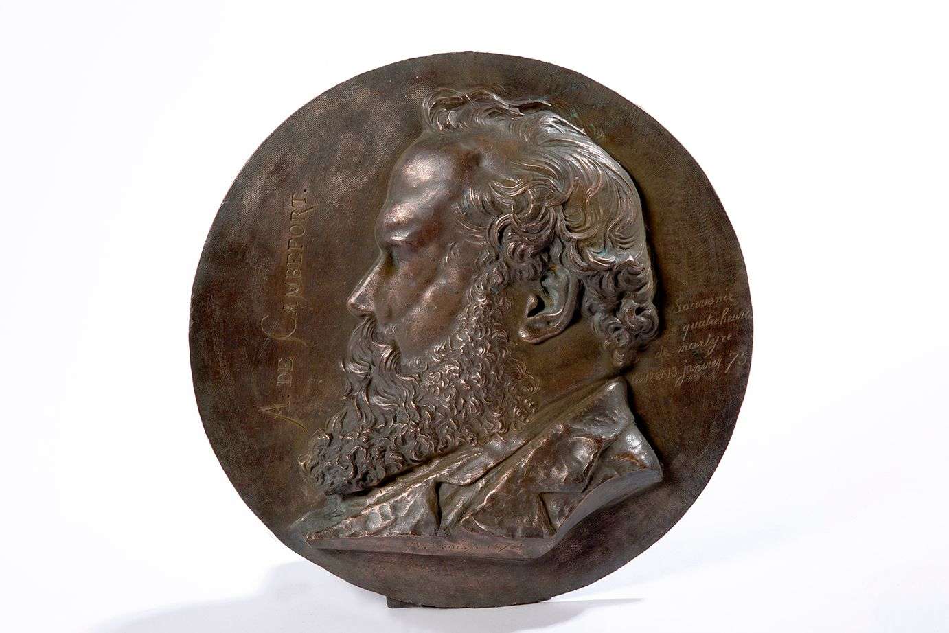 Médaille commémorative en alliage (?) au portrait en relief d'A. de Cambefort représenté de profil.