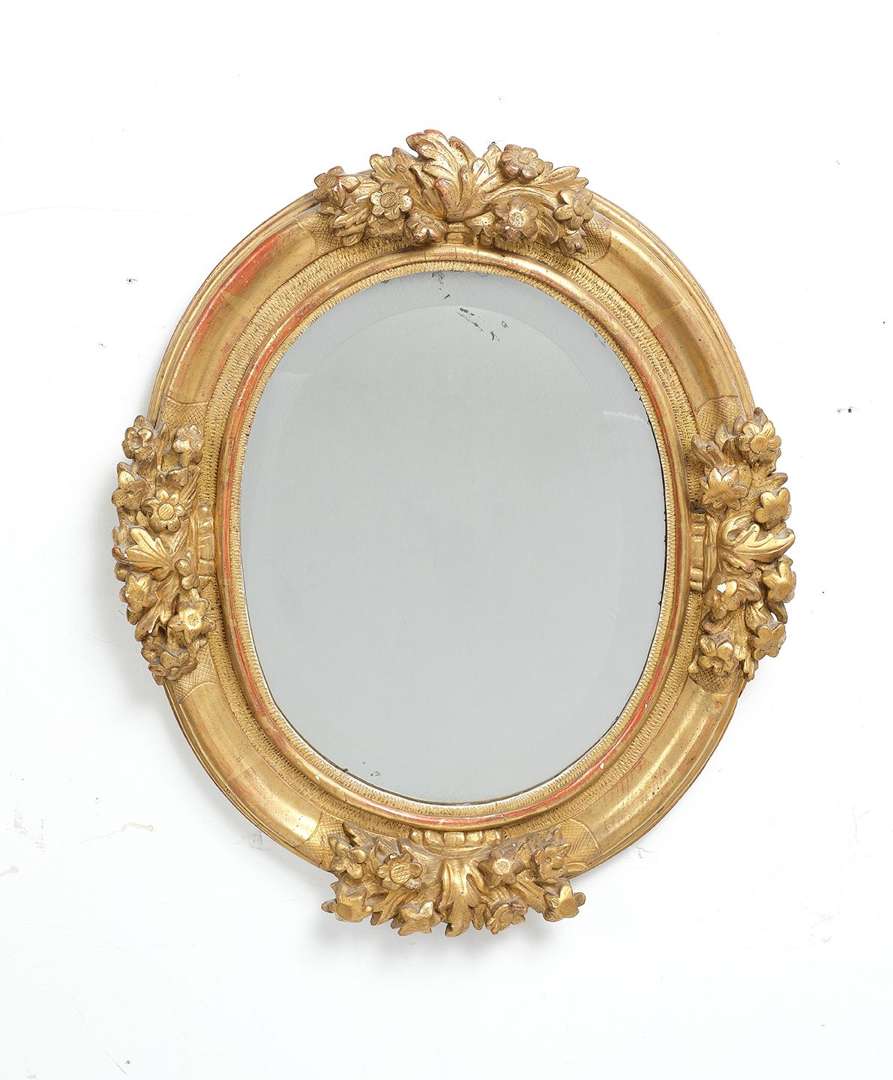 fait d'un cadre en bois en platre doré orné de corbeilles fleuries.