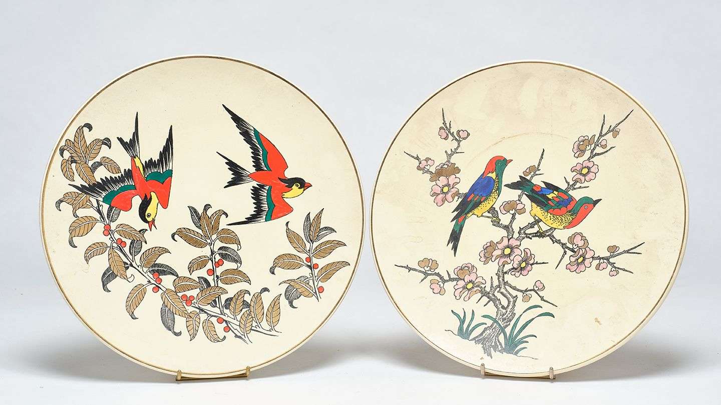 Deux plats en faïence à décor peint polychrome par Maurice-Paul Chevallier (1892-1987).