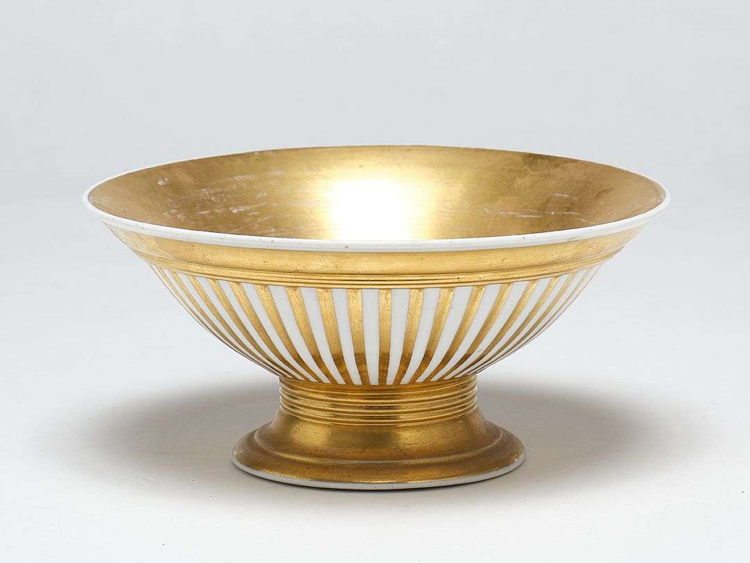 Coupe sur pied en porcelaine blanche et réhauts dorés