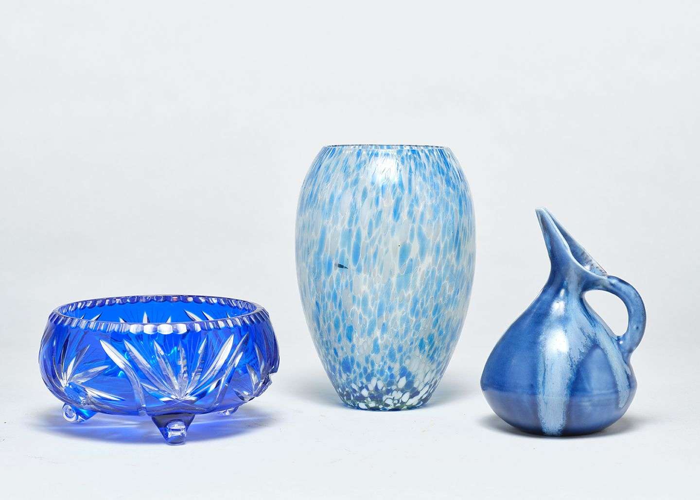 - un pichet en céramique bleue. Hauteur : 18 cm