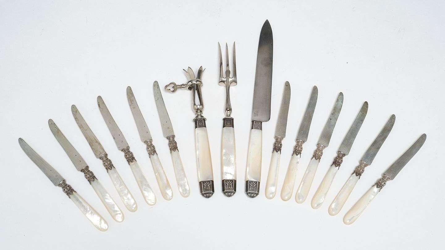 - un nécessaire à servir le gigot comprenant un couvert et une pince.