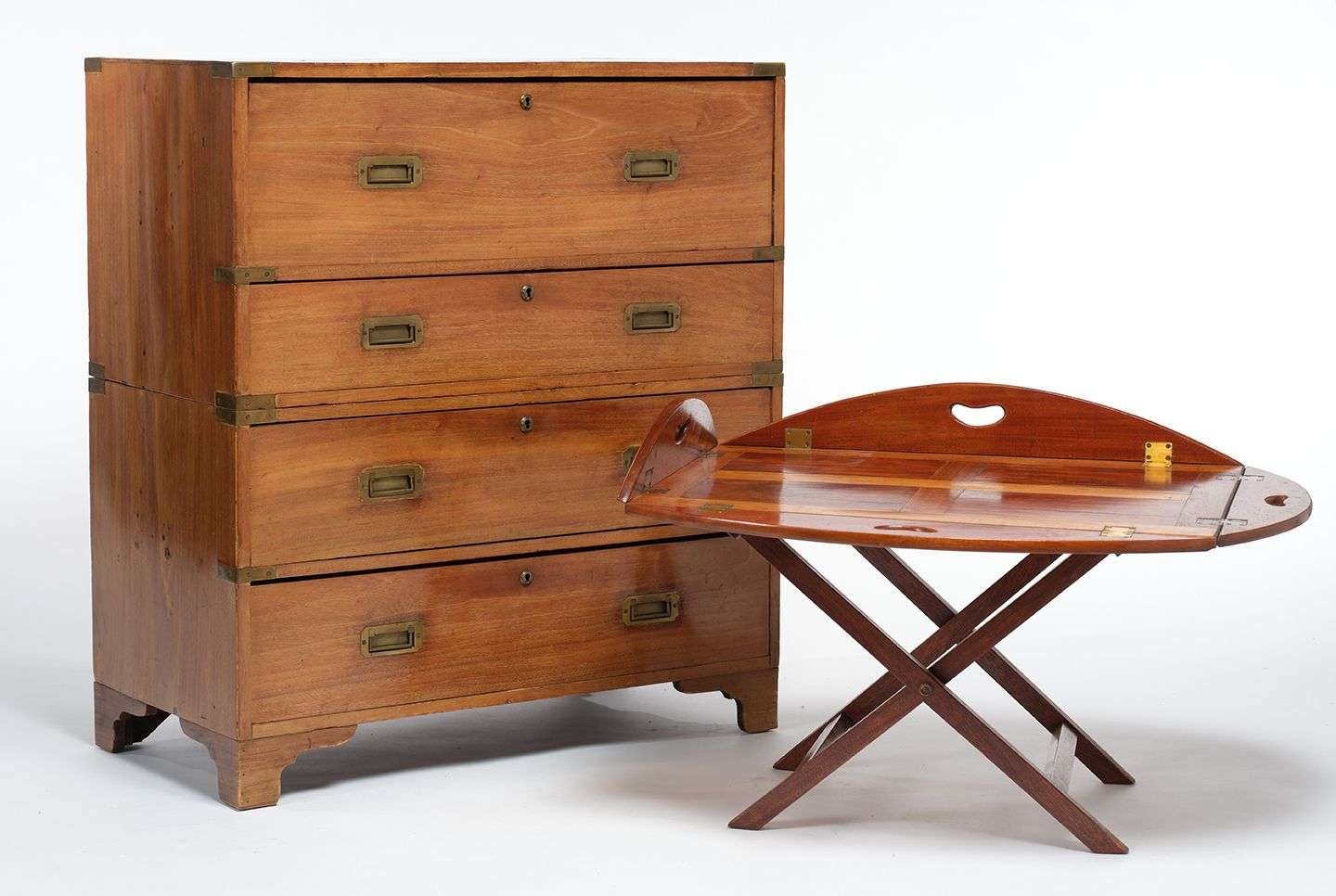 - une table de bateau à plateau en bois de placage à volets abattables sur un piétement pliant.