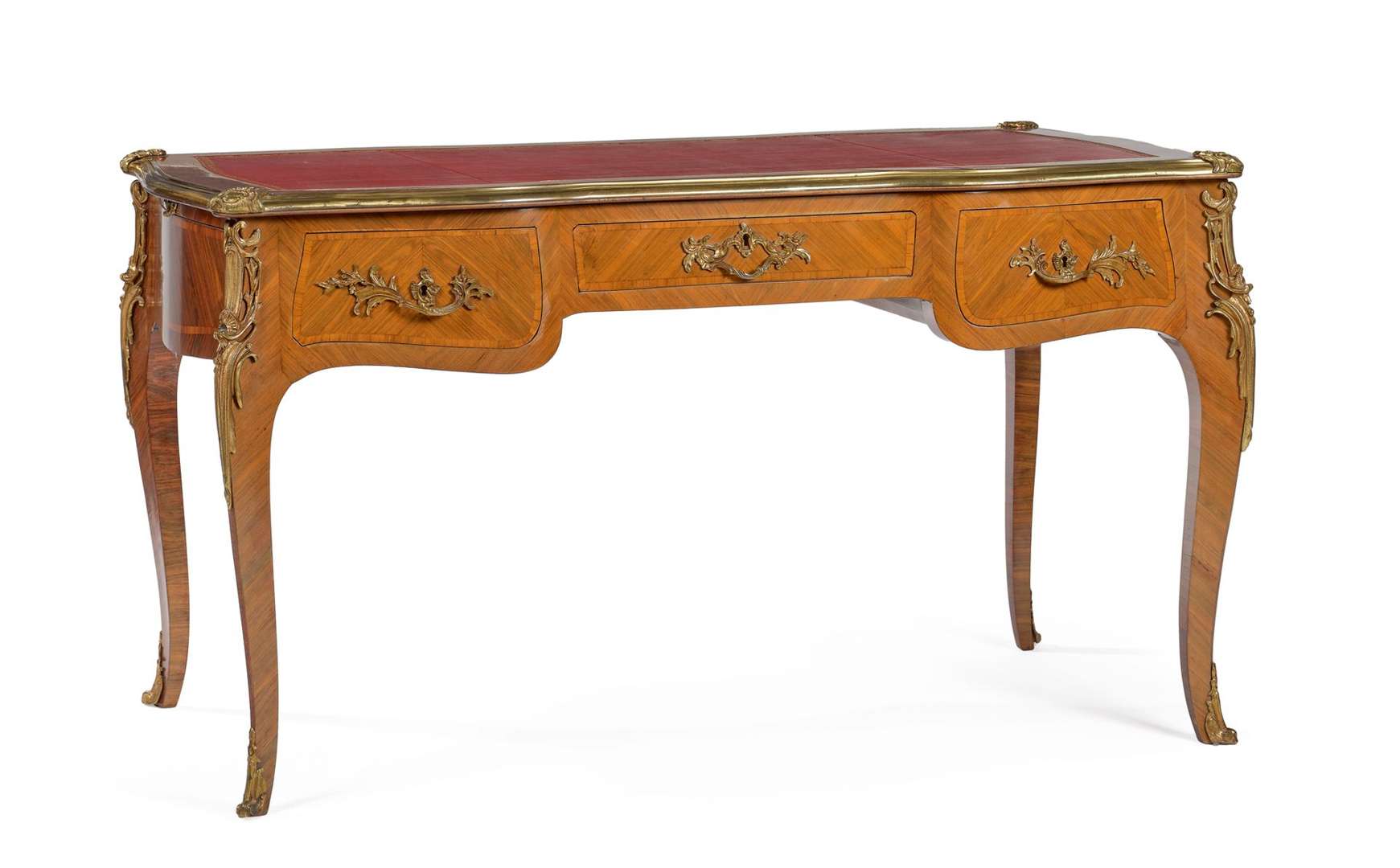 BUREAU PLAT rectangulaire en bois de placage en aile de papillon. Le plate