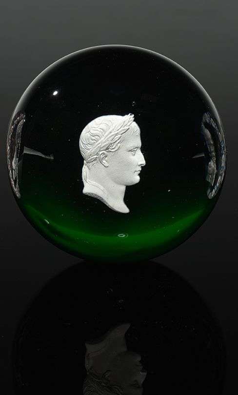 à fond vert orné d'un profil de Napoléon Ier en cristallo-cérame par Andrieux
