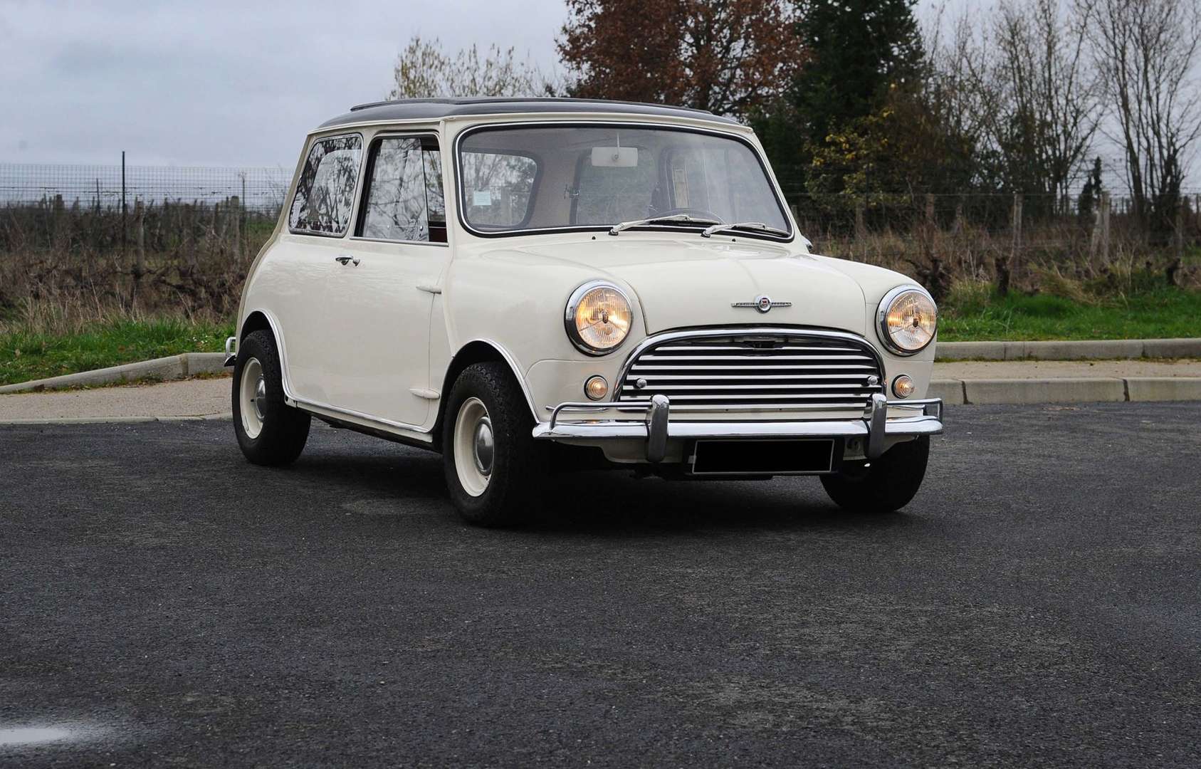 Selon le certificat British Motor Industry Heritage qui accompagne le riche dossier de la voiture, cette Mini fut construite le 6 Avril 1966, à destination de la France, qu’elle n’a jamais quittée | le moteur est bien celui d’origine « matching numbers », et le toit ouvrant qui l’équipe date également de son arrivée en concession