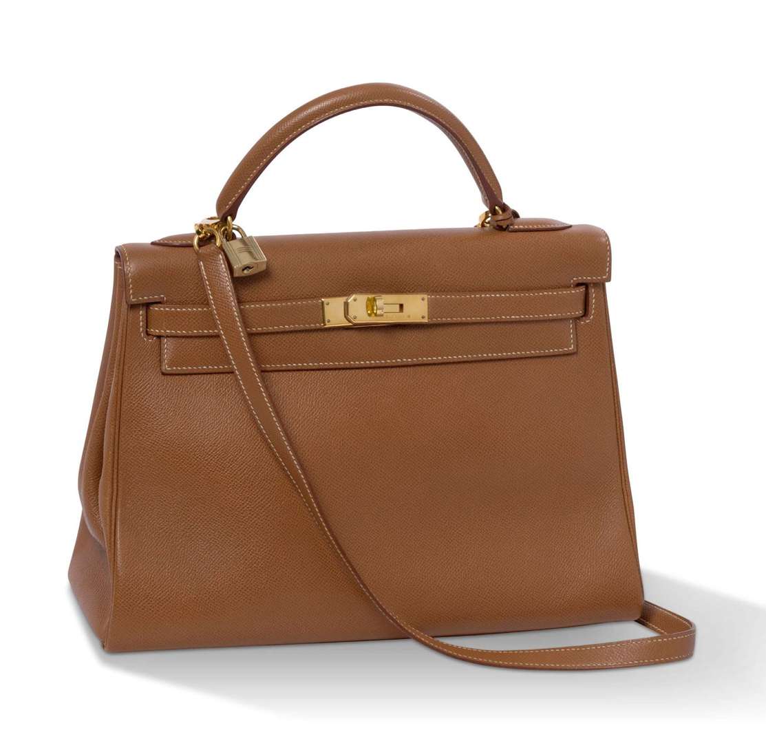 Sac à main en cuir Epsom Gold et surpiqures blanches