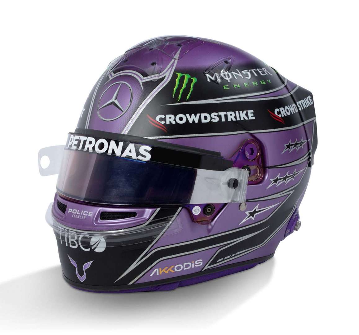 Numéro de série 120502, taille 59, étiquette de mousse de cou indiquée Lewis Hamilton
