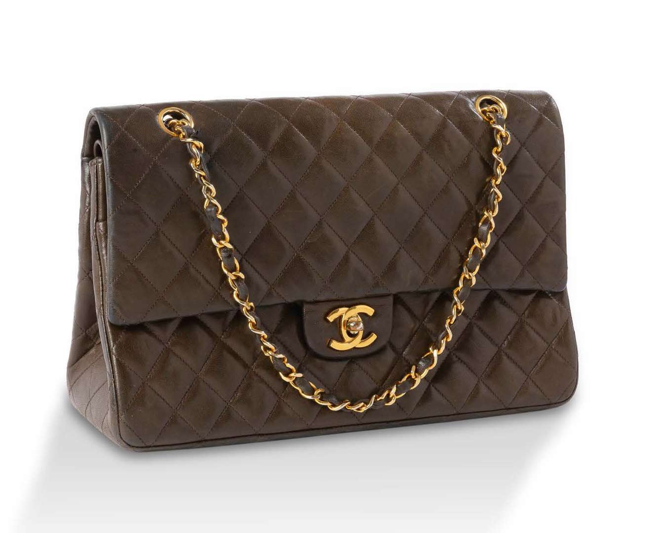 A "Timeless" brown leather bag by Chanel~