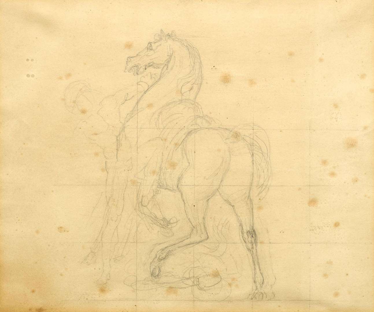 Étude pour un cheval se cabrant, retenu par un homme