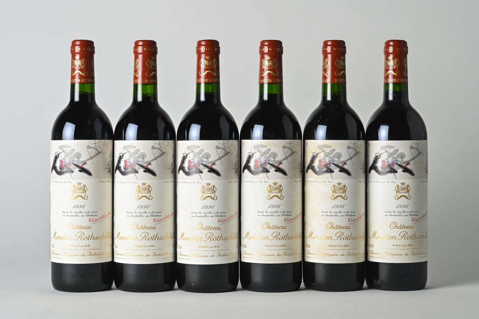 6 B CHATEAU MOUTON ROTHSCHILD (Caisse Bois d'origine sale) (4 e.t.h. légères et 2 e.t.h.) - 1996 - GCC1 Pauillac