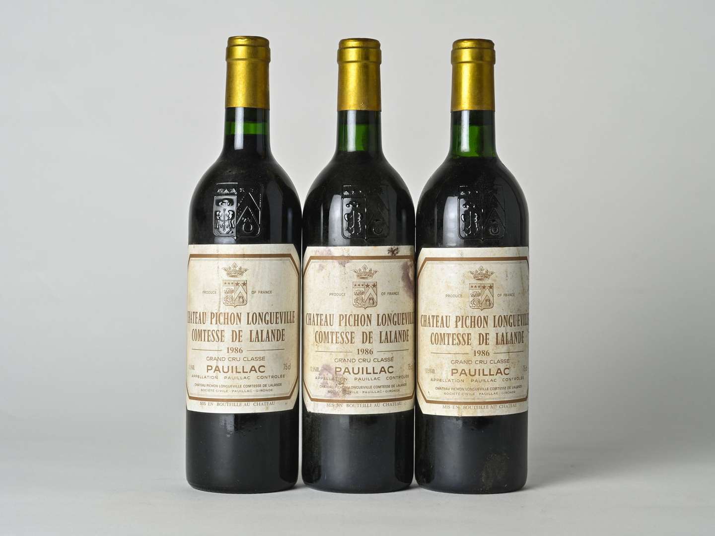 3 B CHÂTEAU PICHON COMTESSE DE LALANDE (1 B.G| 1 T.L.B.+| e.t.h. dont 1 e.a.) - 1986 - GCC2 Pauillac