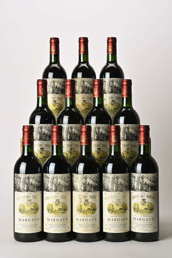 12 B CHÂTEAU SIRAN (Caisse Bois d'origine) (2 B.G| 1 T.L.B| e.t.h. légères dont 4 e.a| 2 c.a. bas de jupes) - 1994 - Margaux