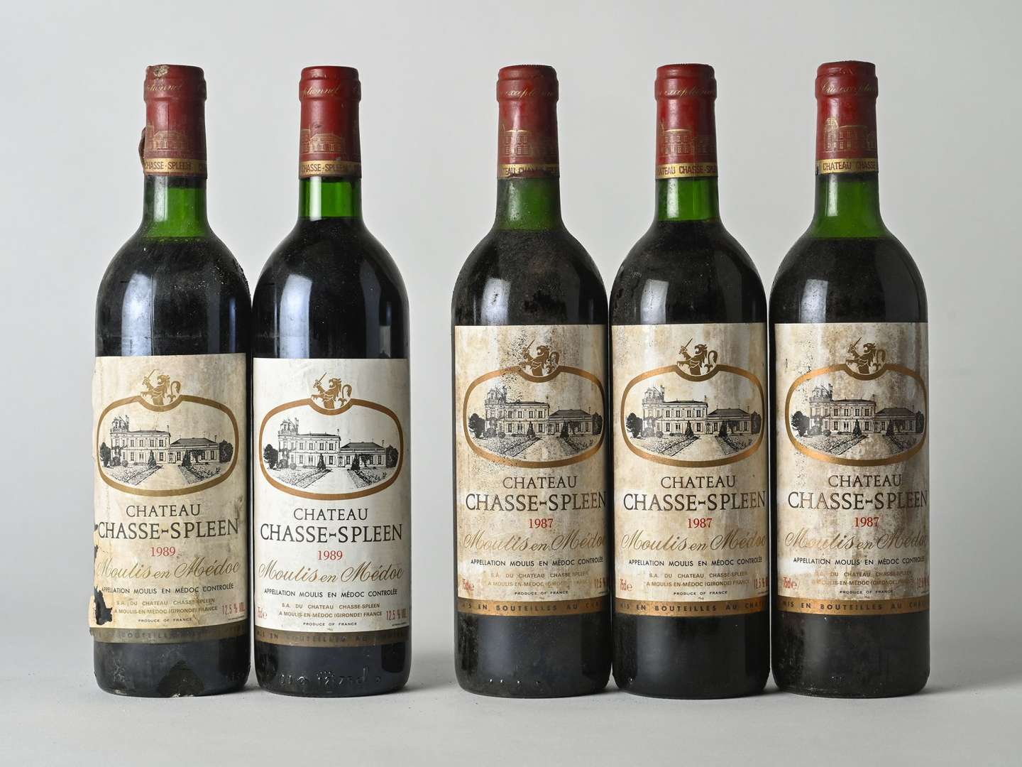 3 B CHÂTEAU CHASSE-SPLEEN (1 B.G| 1 T.L.B| 1 H.E.+| e.t.h| 1 c.l.a. bas de jupe) - 1987 - Moulis