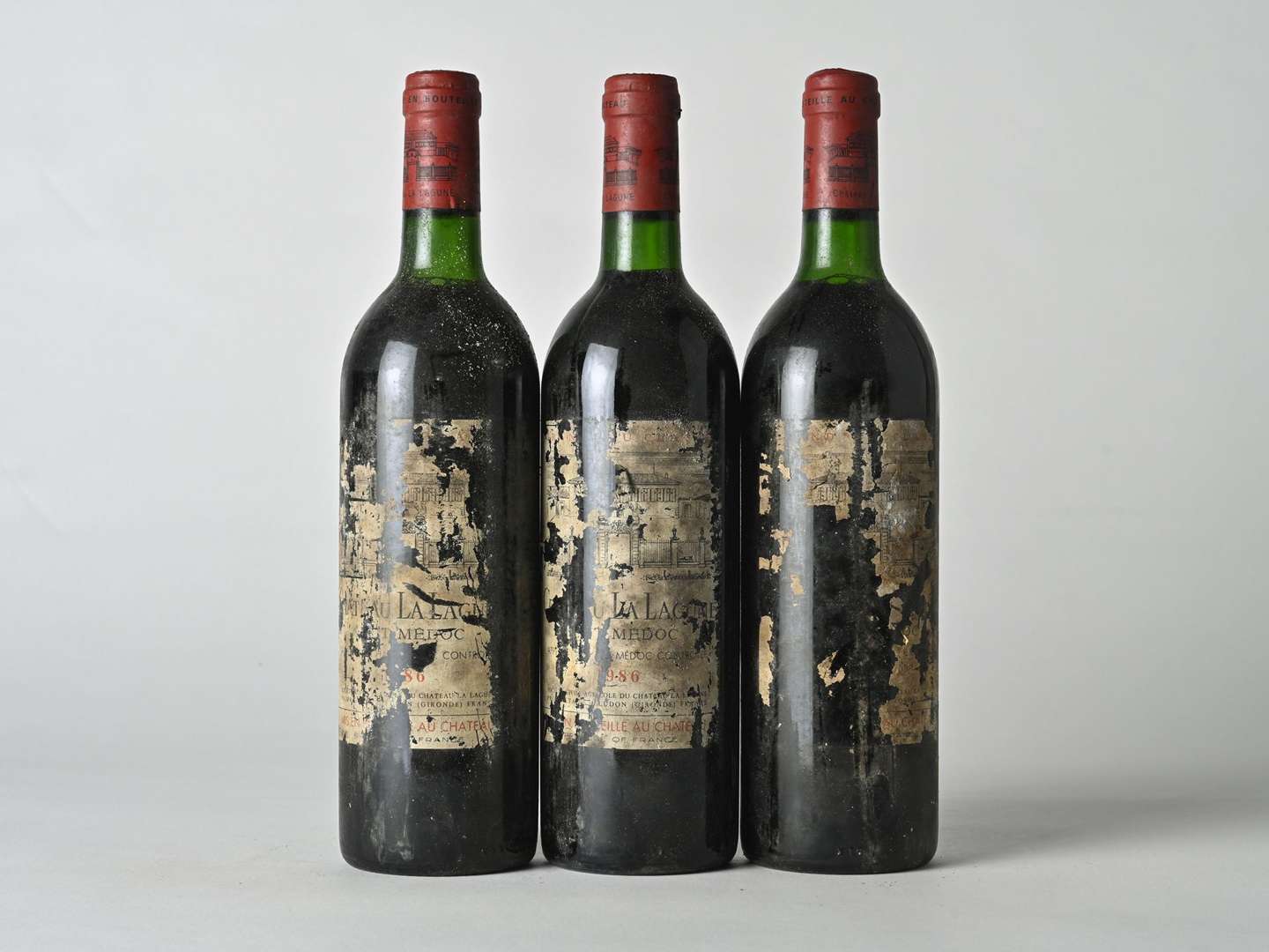 3 B CHÂTEAU LA LAGUNE (1 B.G| 2 T.L.B| e.q.i. avec 2 millésimes partiellement lisibles et 1 illisible) - 1986 - GCC3 Haut-Médoc